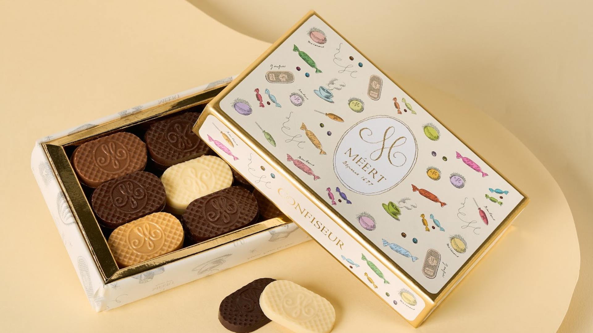 Dark, milk, white and dulcey chocolate gaufrettes. Box of 100g Plus de détails