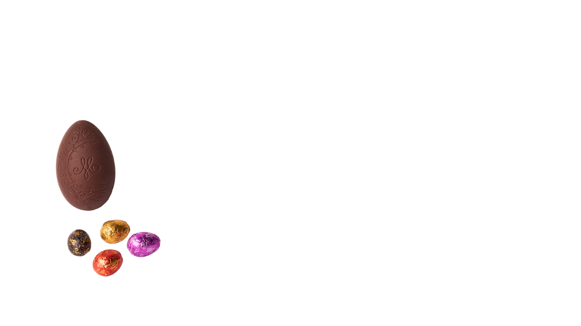 Dark chocolate Easter egg filled with little chocolate eggs (white chocolate, dark chocolate and milk chocolate).