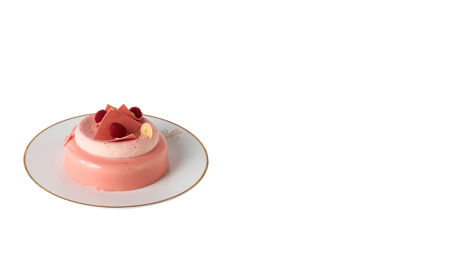 Croustillant sablé au praliné coco, crémeux framboise, citron et mascarpone, biscuit cuillère, confit à la framboise, mousseux à la vanille, ganache montée infusée à la fève de tonka.