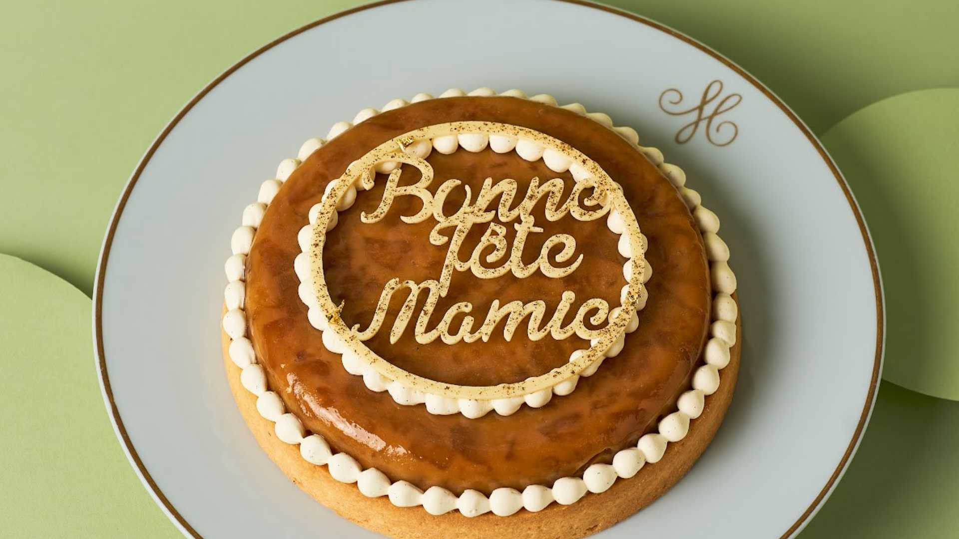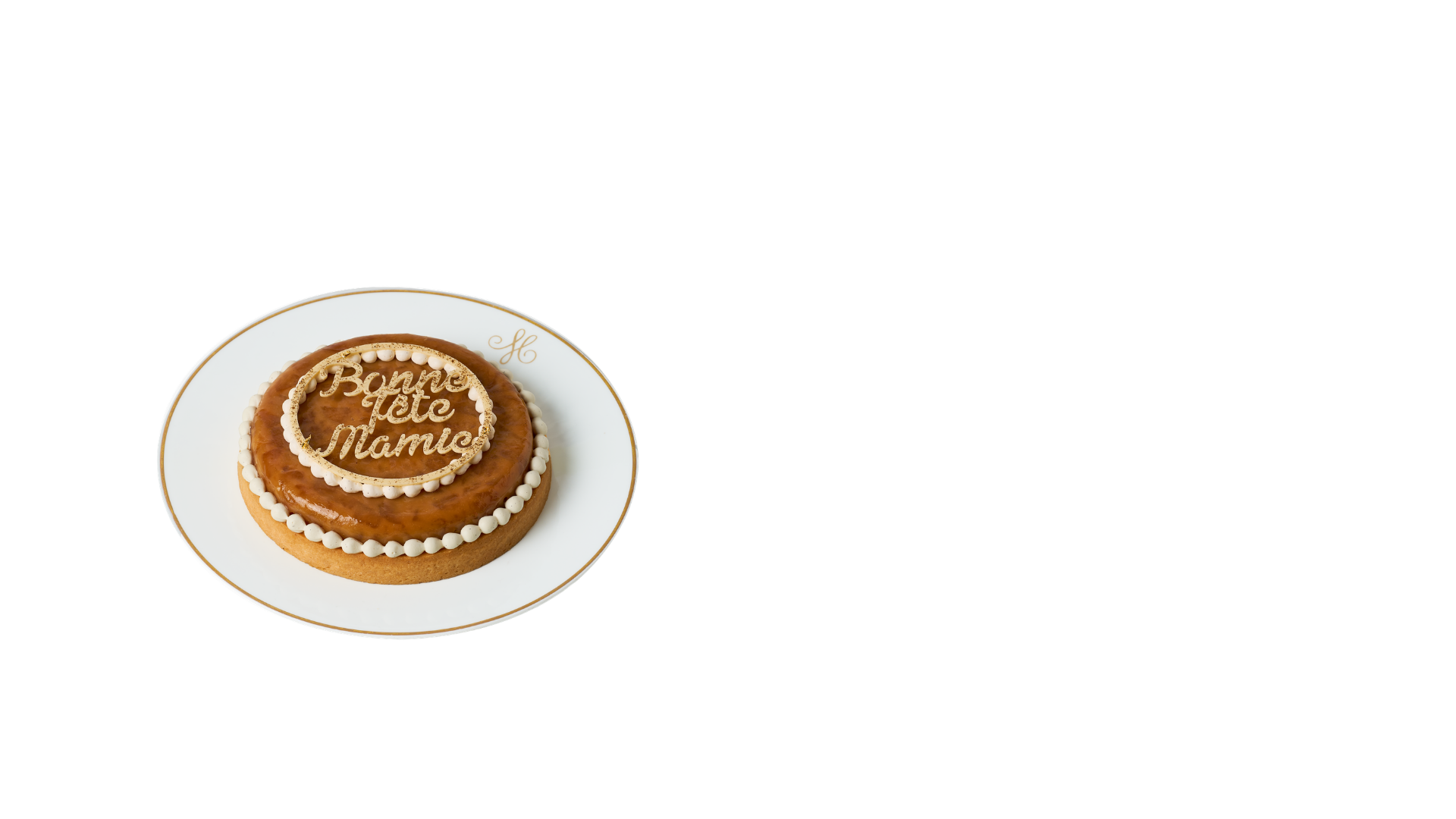 Pâte sucrée amandes et noisettes garnie d'une fine couche de frangipane, caramel onctueux à la vanille, ganache montée à la vanille de Madagascar, palet de pommes façon tatin en deux textures.